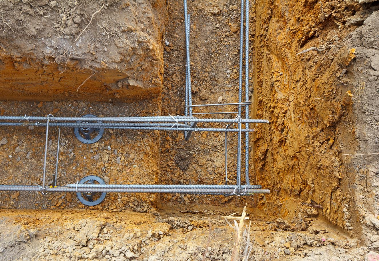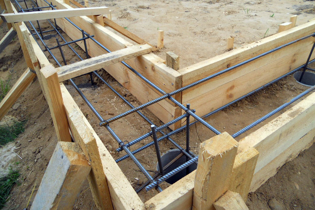 Взяв металлический прут диаметром 10 мм, изготавливают решетку для железобетонной конструкции. Используя доски или листы фанеры, сооружаем опалубку, высота которой составляет порядка 20 см. Металлическая решетка должна быть уже ширины траншеи сантиметров на 10, укладывать ее необходимо, применяя специальные подкладки из кирпича. Следующим этапом будет изготовление раствора. Готовый раствор заливается в траншею, а верх выравнивается мастерком, после чего необходимо подождать определенное время для застывания фундамента. Поверх железобетонной конструкции стоит разместить гидроизоляционный материал.