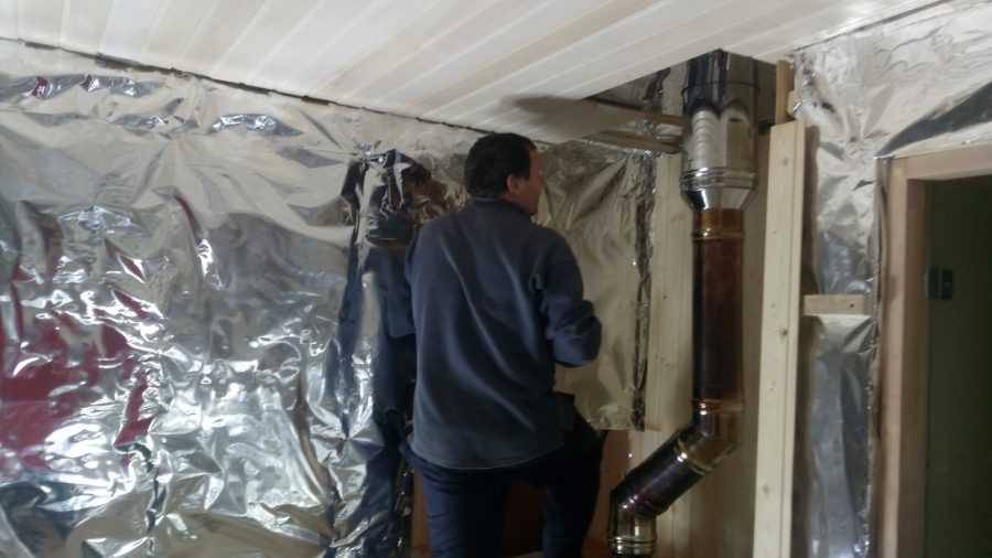 Главная задача этого материала — воспрепятствовать образованию конденсата внутри стены бани