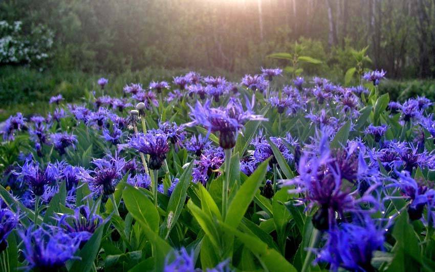 Простой полевой цветок, который может служить замечательным фоном для более роскошных растений. Ухода василек практически не требует и замечательно себя чувствует, произрастая буквально, как сорняк. Селекционерами выведены сорта василька не только обычного небесного оттенка, но и белые, желтые, даже розовые. Есть и махровые разновидности, отличающиеся особой декоративностью.