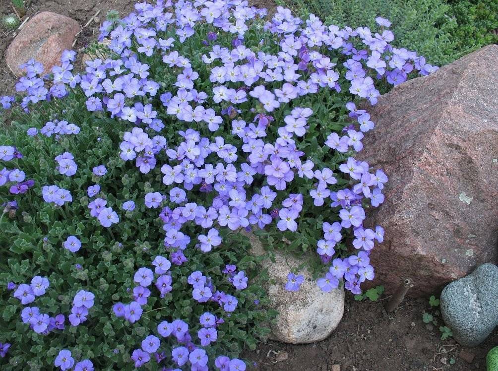 Почвопокровный по сути цветок, отличающийся как впечатляющими темпами разрастания, так и очень красивыми цветками. Оттенки обриеты — розовый, синий и белый, причем самых чистых, нежных тонов.