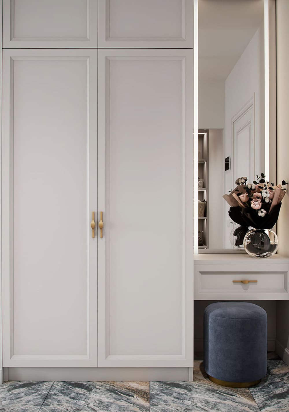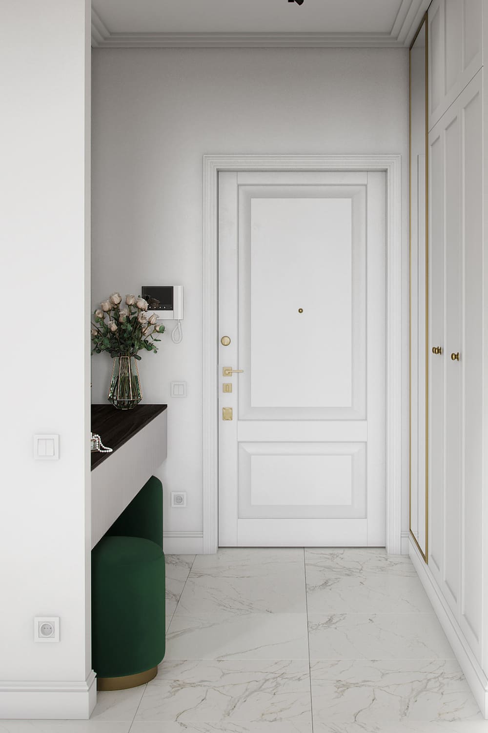 Стиль классицизм в прихожей с модульной мебелью.