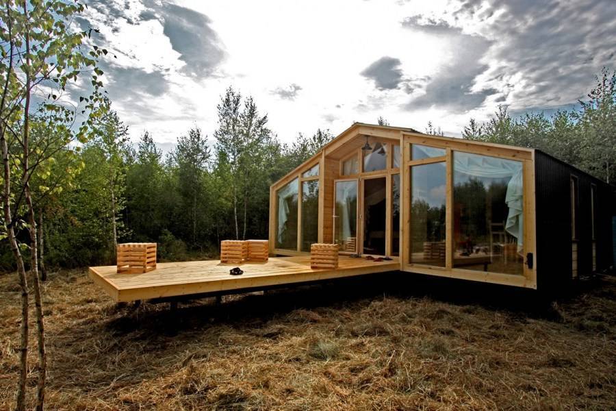 Оригинальное решение – модульный дачный дом на плавучем понтоне. Такой плавучий дом можно собрать в течение нескольких часов, а при желании – переместить его по воде.