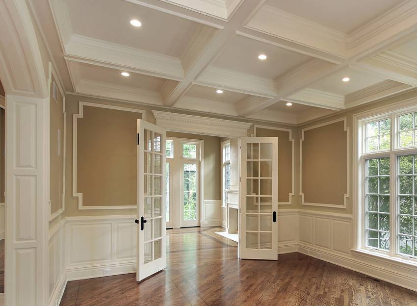 Для создания дизайна в современном стиле следует выбирать ровные строгие панели, а для оформления интерьера в роскошном классическом стиле идеально подойдут элементы с лепниной. В таком случае часто используют молдинги для межкомнатных дверей в виде наличников. Гармоничное сочетание обеспечит подбор планок, дверей и плинтуса в одном тоне.