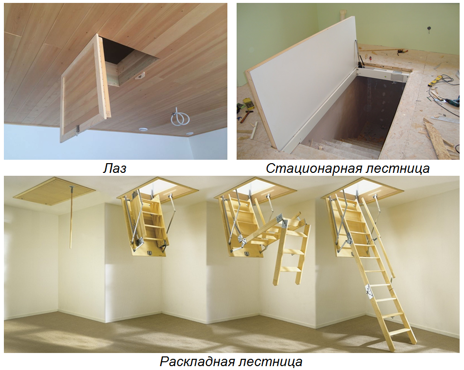 - Люк без лестницы. В народе он называется лаз, для его эксплуатации используется приставная лестница. Обычно устанавливается на дачах или в небольших домах как временный вариант.