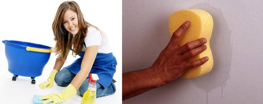 Важный момент: моющее средство нужно удалить со стены, не оставляя подтеки и капли