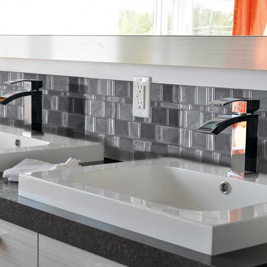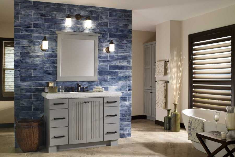 На фото декоративной плитки для ванного помещения показано, что следует отдавать предпочтение ребристым или шероховатым поверхностям, чтобы избежать травмоопасности. Так как влажность здесь повышена, то у материала показатель пористости должен быть минимальным (керамика, камень и т.д.).