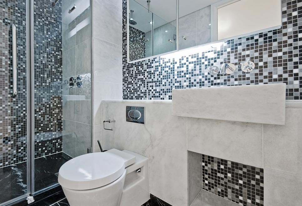 Керамическая плитка под мозаику для ванной стоит недорого, ей легко облицовывать стены, даже не имея должного опыта.