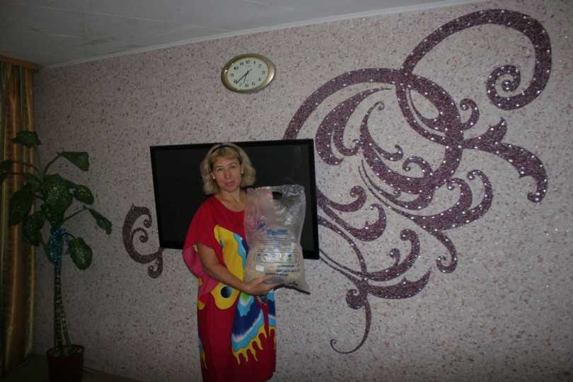 Жидкие обои – это сухая смесь, состоящая из целлюлозы, хлопка или шелка, клея, декоративных компонентов. Состав необходимо разводить водой.