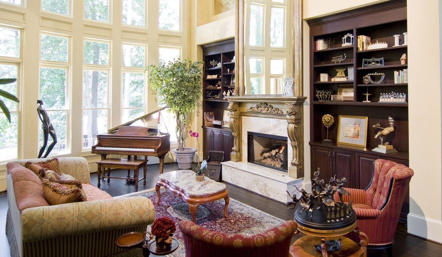 Выбранный стиль оформления гостиной определят дизайн, наличие обязательных элементов и компоновку мебели. Для классических направлений характерна добротная и массивная мебель, изготовленная из натуральной древесины, которая отличается нарядным дизайном, создающим атмосферу дворцовой торжественности.
