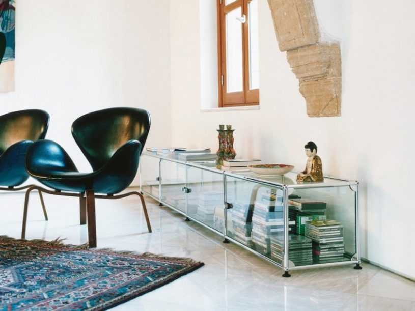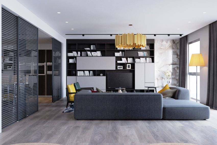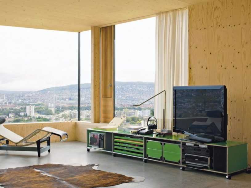 Среди частных положительных моментов можно отметить то, что для маленьких квартир и студий модульные системы просто находка: узкие и навесные шкафы экономят место и делают комнату-гостиную более воздушной — модули как будто «парят» в воздухе на разном расстоянии от пола.