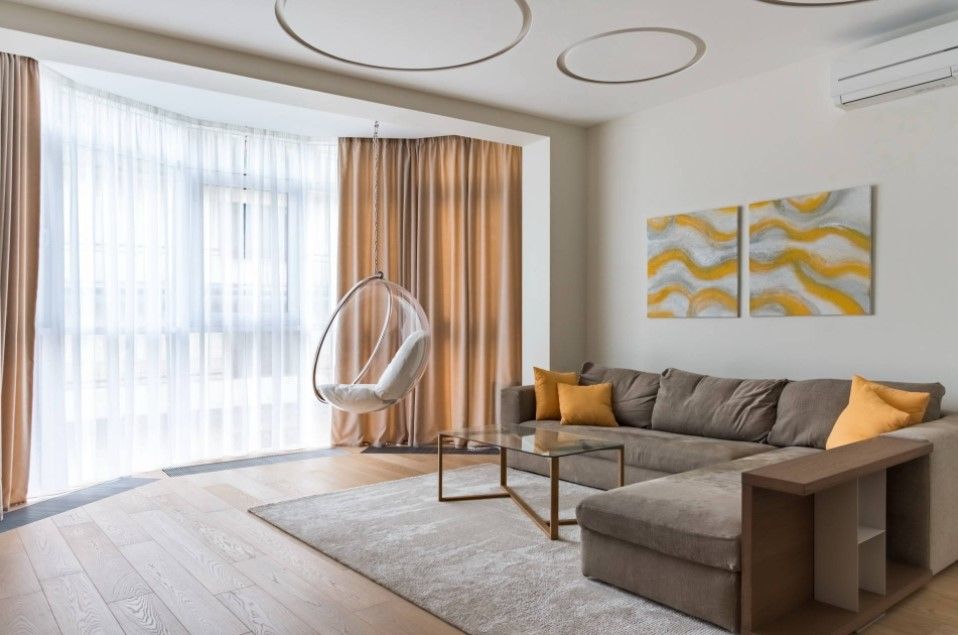 Светло-бежевый диван прекрасно дополнит современный интерьер