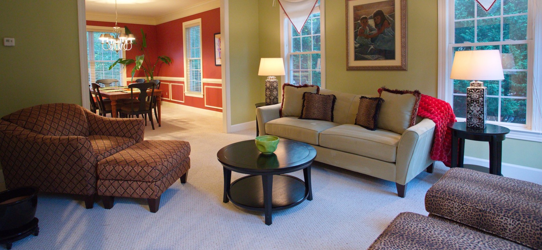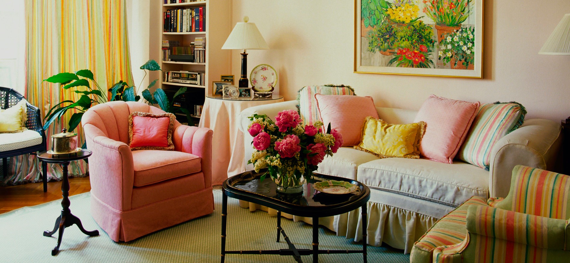 Как правило, в обоих стилях преобладают светлые тона: голубой, бежевый или белый. Характерным отличием является большое количество текстиля с рюшами, бантами или цветами. Благодаря цветовой палитре мебель не смотрится громоздко и может быть использована для помещений как большой, так и маленькой площади. Для нее характерны прямые линии ножек, имеющих небольшой округлый декор. Подбор мебели для гостиных в этом стиле ограничивается шкафом-витриной с открытыми фасадами, обеденной группой, диваном, а также консолью, на которой будет стоять настольная лампа. Подчеркнуть стилистическую направленность помогут цветы, которые могут стоять в вазе или находиться на принтах текстиля.