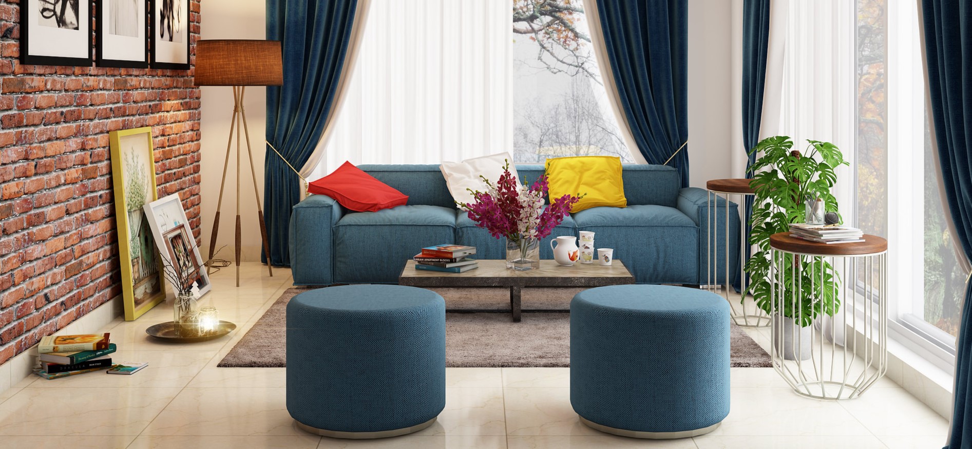 Под цвет дивана можно подобрать небольшой пуф для гостиной