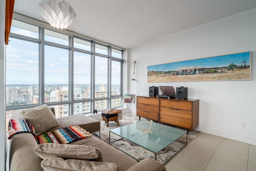 Белый диван идеально подойдет для гостиной в стиле минимализм
