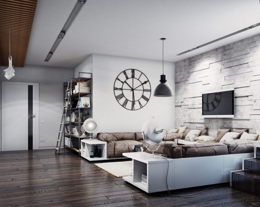 - При оформлении такого пространства необходимо учитывать наличие свободного места для правильного выбора мебели.