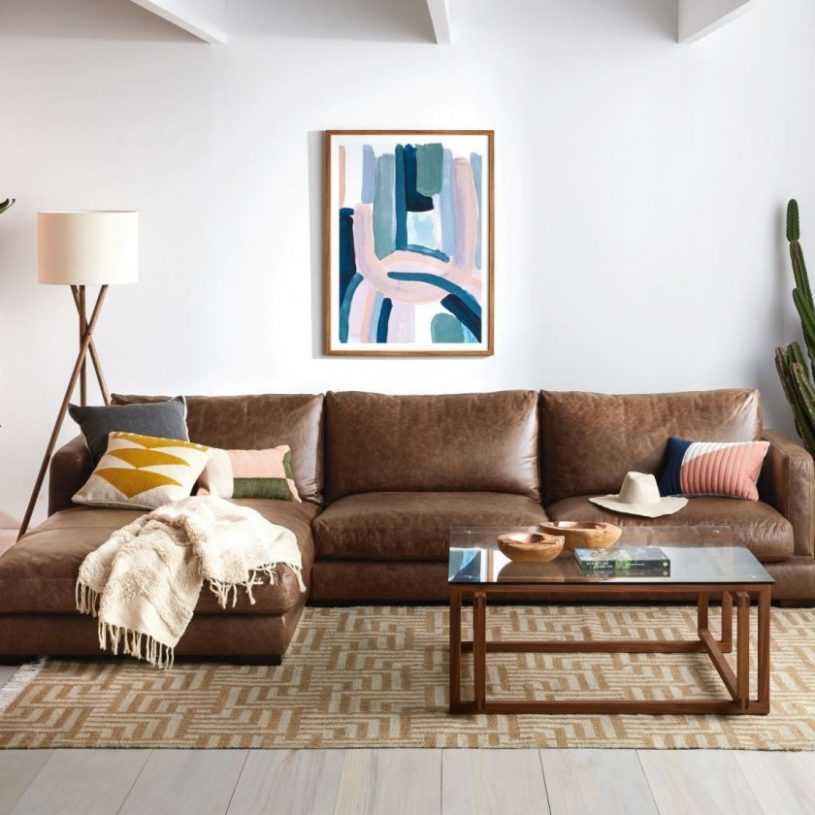 Если площадь гостиной небольшая, но необходимо разместить много людей, следует обратить внимание на угловой диван. Он сделает интерьер стильным и не займет много места
