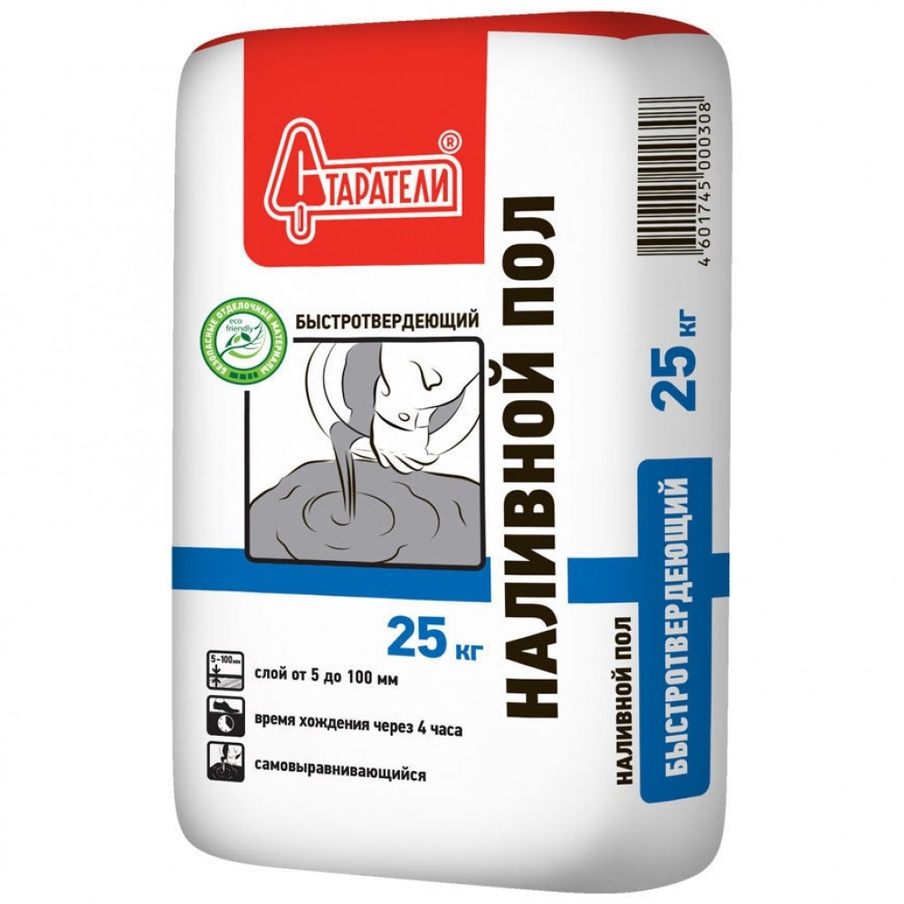 Компания выпускает более 80 видов смесей, включая наливной пол “Старатели” быстротвердеющий и самонивелирующийся. Производитель обещает, что по такому покрытию можно ходить уже через четыре часа.