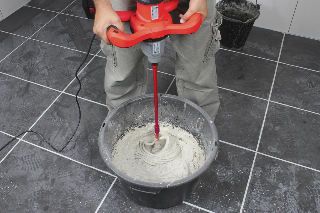 В ведро надо налить тщательно отмеренное количество чистой, без примесей, жидкости, постепенно добавить сухую смесь и перемешать миксером до получения однородного раствора. Срок жизнеспособности зависит от базового вяжущего, и, как правило, не превышает 30-60 минут.