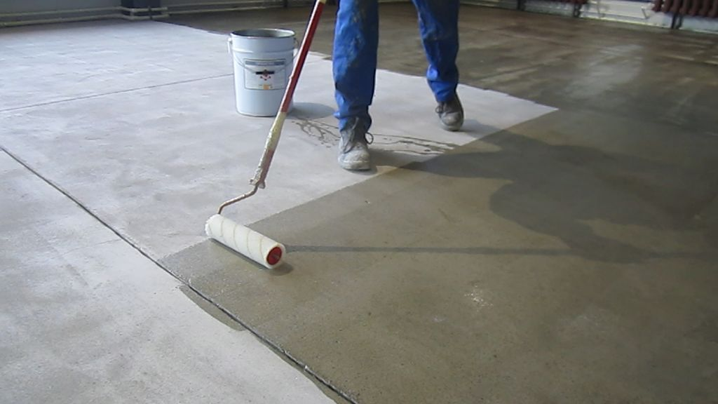 Пол следует предварительно очистить от мусора, пыли, загрязнений. Пятна жира, масла, битума, красок — удалить растворителями или счистить. Слабые осыпающиеся участки, цементное молочко снять, а трещины, каверны необходимо расшить и заполнить специальными быстросохнущими составами (эпоксидной шпатлевкой или ремонтным блиц-цементом).
