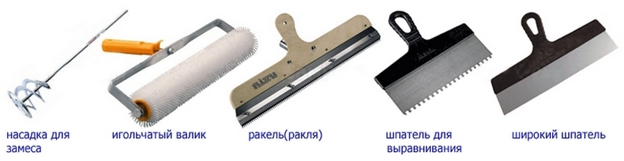 Емкость для замешивания (достаточного объема), ведро. Строительный миксер (заменяется дрелью со специальными насадками). Игольчатый валик