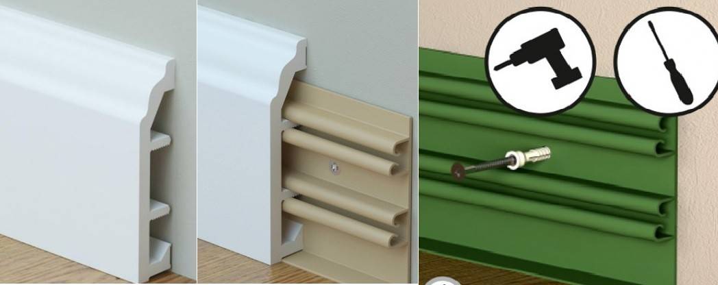 - даже при минимальной толщине плинтуса с кабель-каналом он может удерживать любое количество проводов.