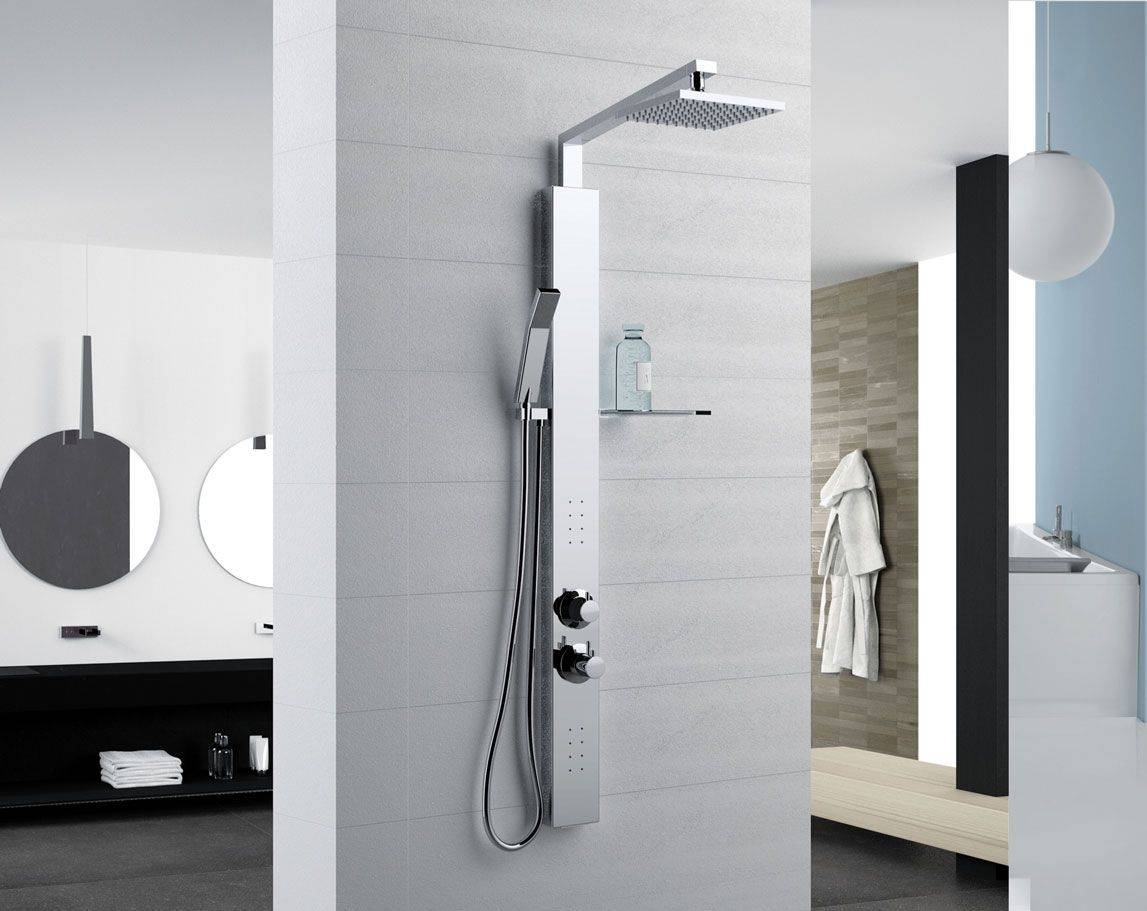 Такую душевую стойку, пожалуй, можно назвать одной из самых удобных. Пользоваться ею удобнее, чем раздельными душем и смесителем, а кроме того, весь комплект выполнен в едином дизайнерском стиле. Кстати, и стоит такой вариант зачастую дешевле, чем разновидности без смесителя.