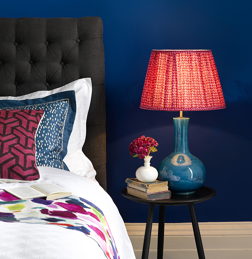 Для спальни выбирают приглушенный свет. Возможны отдельные яркие элементы, но общий фон — с преобладанием пастельного. Настольная лампа в спальне может выступать в качестве ночника возле кровати или освещать рабочую зону, если таковая имеется в этом помещении.