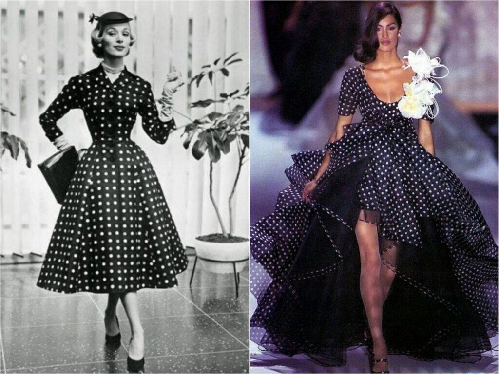 Принт Polka Dot появился задолго до Кристиана Диора, но именно благодаря коллекции 1954 года рисунок в горошек стал популярным во всем мире и сделав классикой моды 50-х годов. Модный рисунок в различных цветовых интерпретациях покорил модниц по всему миру. Его носили как звезды Голливуда, так и обычные домохозяйки в Америке, Европе и СССР.