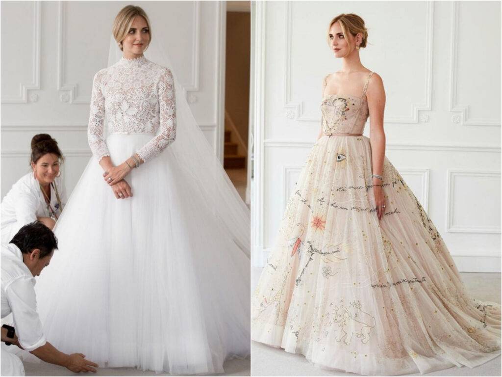 Икона стиля 2010-х годов, fashion-блогер и модный инфлюенсер Chiara Ferragni для свадебной церемонии 1 сентября 2018 года выбирает роскошное свадебное платье французского бренда Christian Dior. Церемония прошла в одном из городке Сицилии, а для торжественного вечера было подготовлено несколько нарядов, которые создала сама Мария Грация Кьюри. Кружевной верх с пышной юбкой дополняла длинная фата. Второе платье для торжественного вечера было выполнено полностью из фирменного тюля, расшитое цитатами из песен жениха девушки и популярного исполнителя Федерико.
