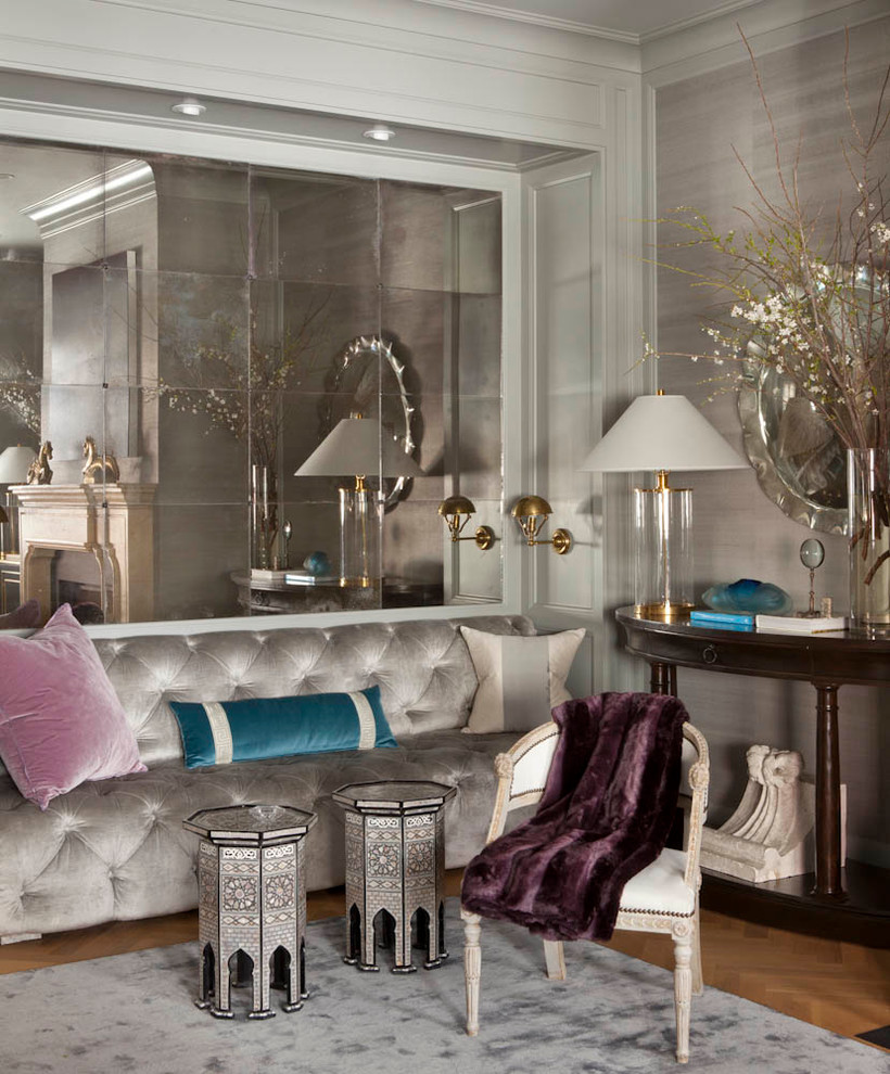 Отражательные поверхности визуально расширяют пространство и наполняют комнату дополнительным светом.