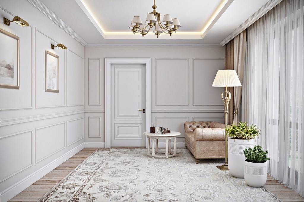 Отделка гостиной в стиле неоклассика не терпит дешёвых материалов