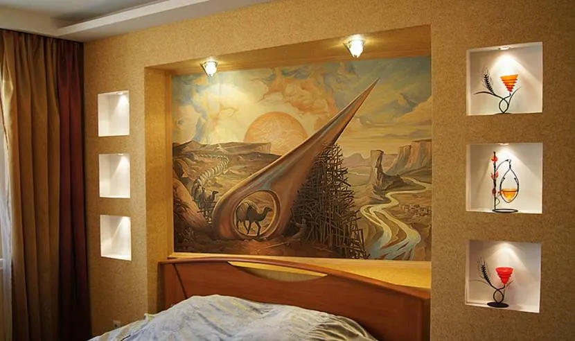 С помощью нестандартной формы можно создать просто невообразимые композиции, скрыть коммуникации, сделать оригинальное изголовье для кровати, в общем – что вашей душе угодно, была бы фантазия. Помните, что использование декоративных углублений в стене визуально расширяет комнату.