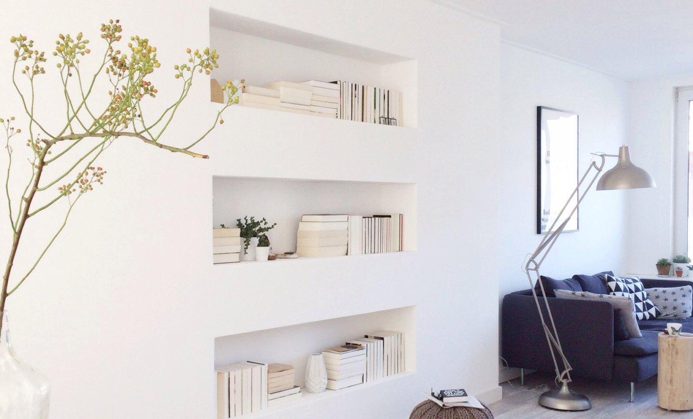 Самодельные ниши из гипсокартона для хранения аксессуаров в интерьере гостиной