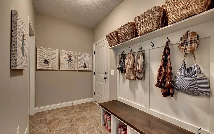 В прихожей углубление чаще всего используют для практических целей. Простая перекладина или шкаф для одежды, полки для вещей и минимум декора. Это поможет избежать перегруженности и беспорядка в комнате.