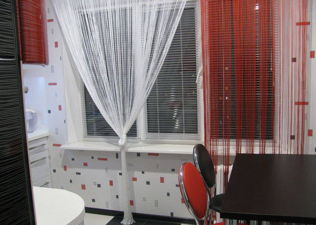 Нитевидные шторы на кухне позволяют воплотить разные фантазии