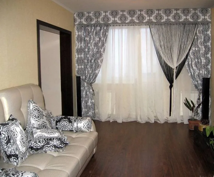 Комбинации встречаются намного чаще – нити заменяют тюль, а более плотные шторы, гардины служат защитой от избыточного света и посторонних взглядов.
