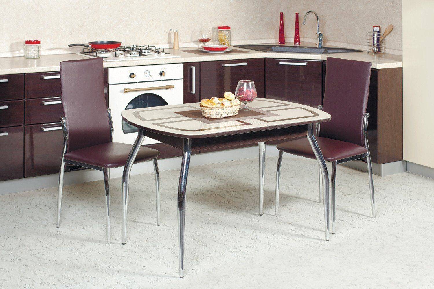 Это классический вид столовой мебели, который можно встретить на кухне многих друзей и знакомых. Модель оправдана разнообразием материалов, хорошей стойкостью и комфортом при сидении за таким обеденным столом.