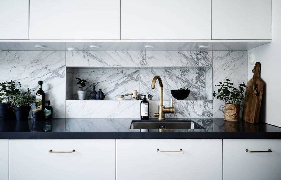 Очень важно подобрать для кухонного помещения подходящий мрамор. Выделяют два типа материала, которые чаще всего используются для столешницы: