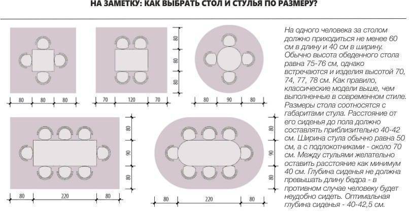 - Как правильно подобрать размер кухонного стола