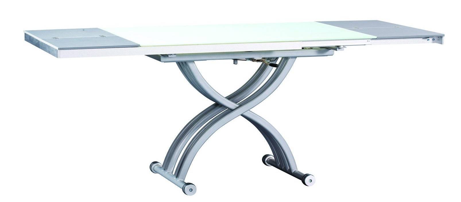 Есть модели столов-трансформеров совсем без ножек или с одной или двумя, которые выдвигаются при раскладывании, с элементами, укрепленными на кронштейнах. Чем меньше занято пространство под мебелью, тем удобнее ей пользоваться. Но нельзя забывать об устойчивости всей конструкции