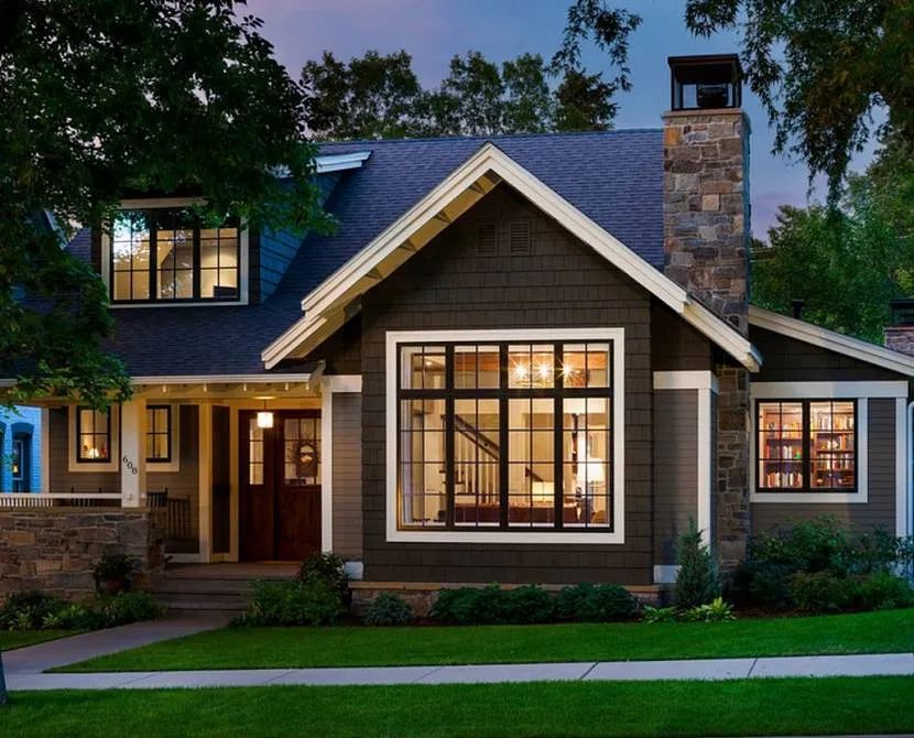 Экстерьер дома может быть в темных цветах, которые доминируют над светлыми.