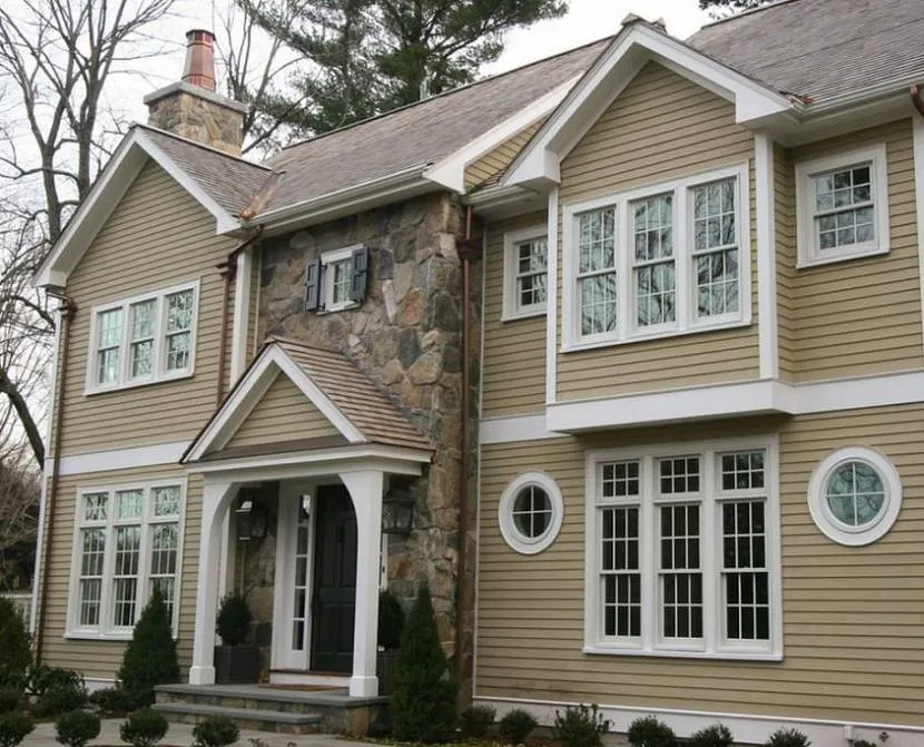 В этом стиле приветствуется контрастное подчеркивание определенных частей фасада, таких как окна, двери и карнизы.