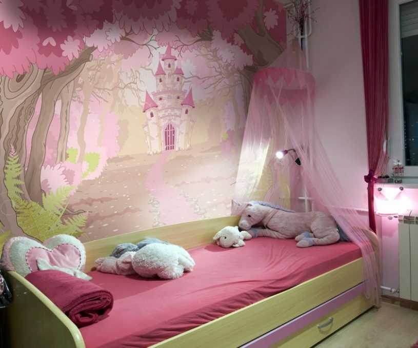 Для комнаты девочки подойдут вспененные виниловые обои с микроспорами, которые пропускают воздух. Перед поклейкой нужно обработать стены противогрибковым покрытием и дать штукатурке полностью высохнуть.