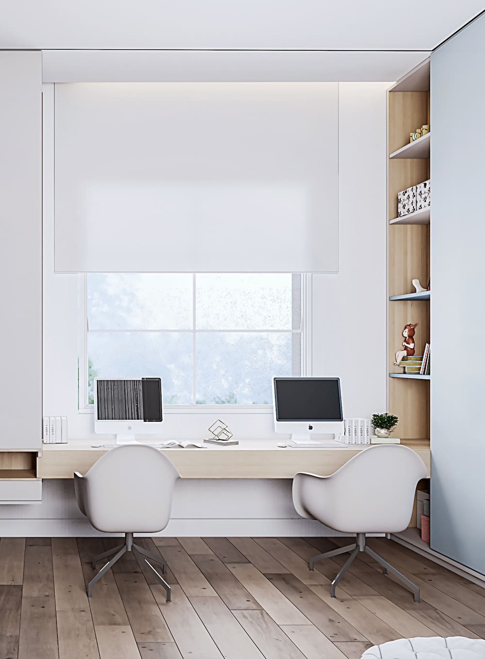 - Школьный уголок с современным компьютерным столом и эргономичным стулом.