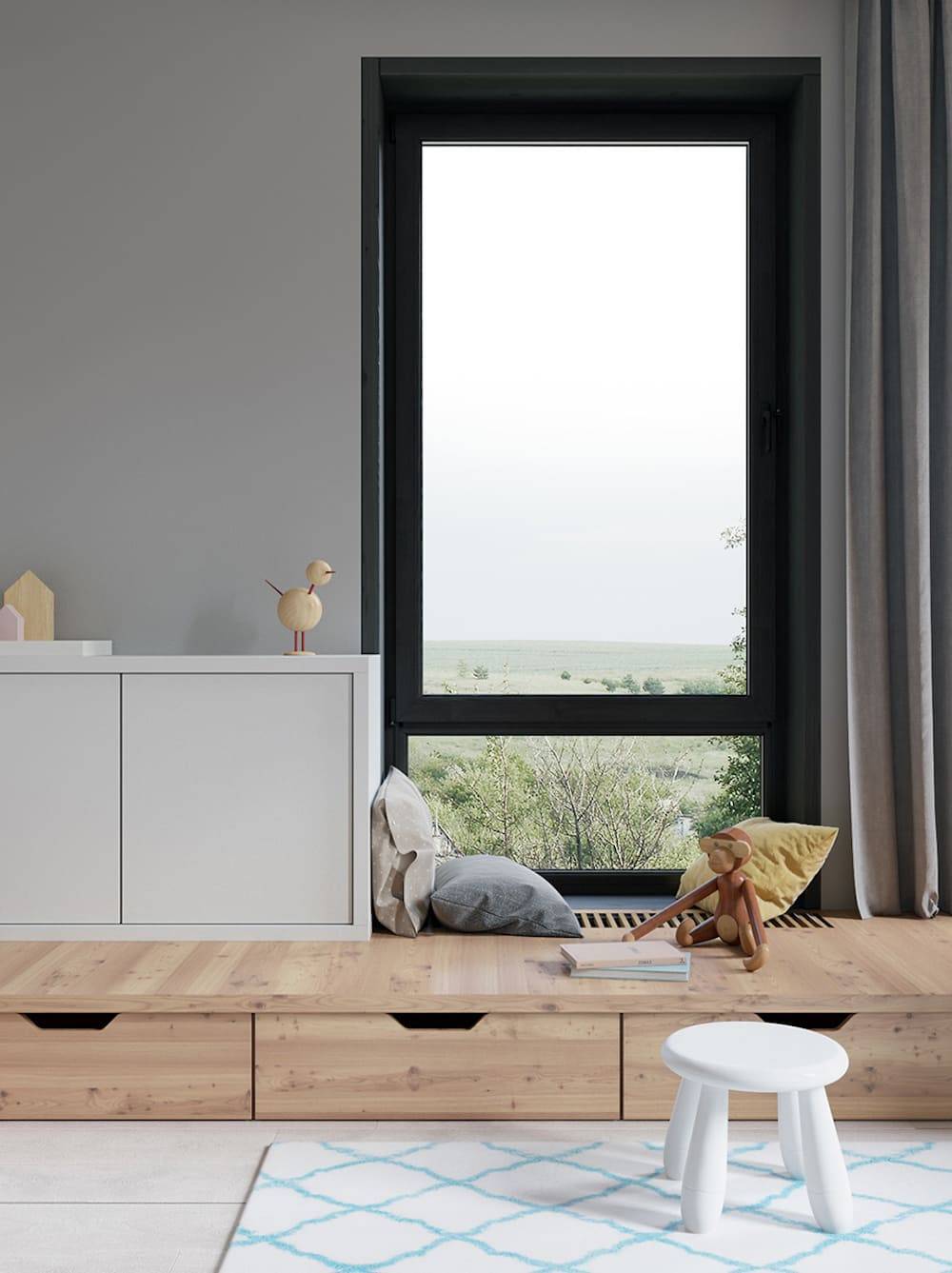 На подоконниках можно оборудовать дополнительное место для отдыха