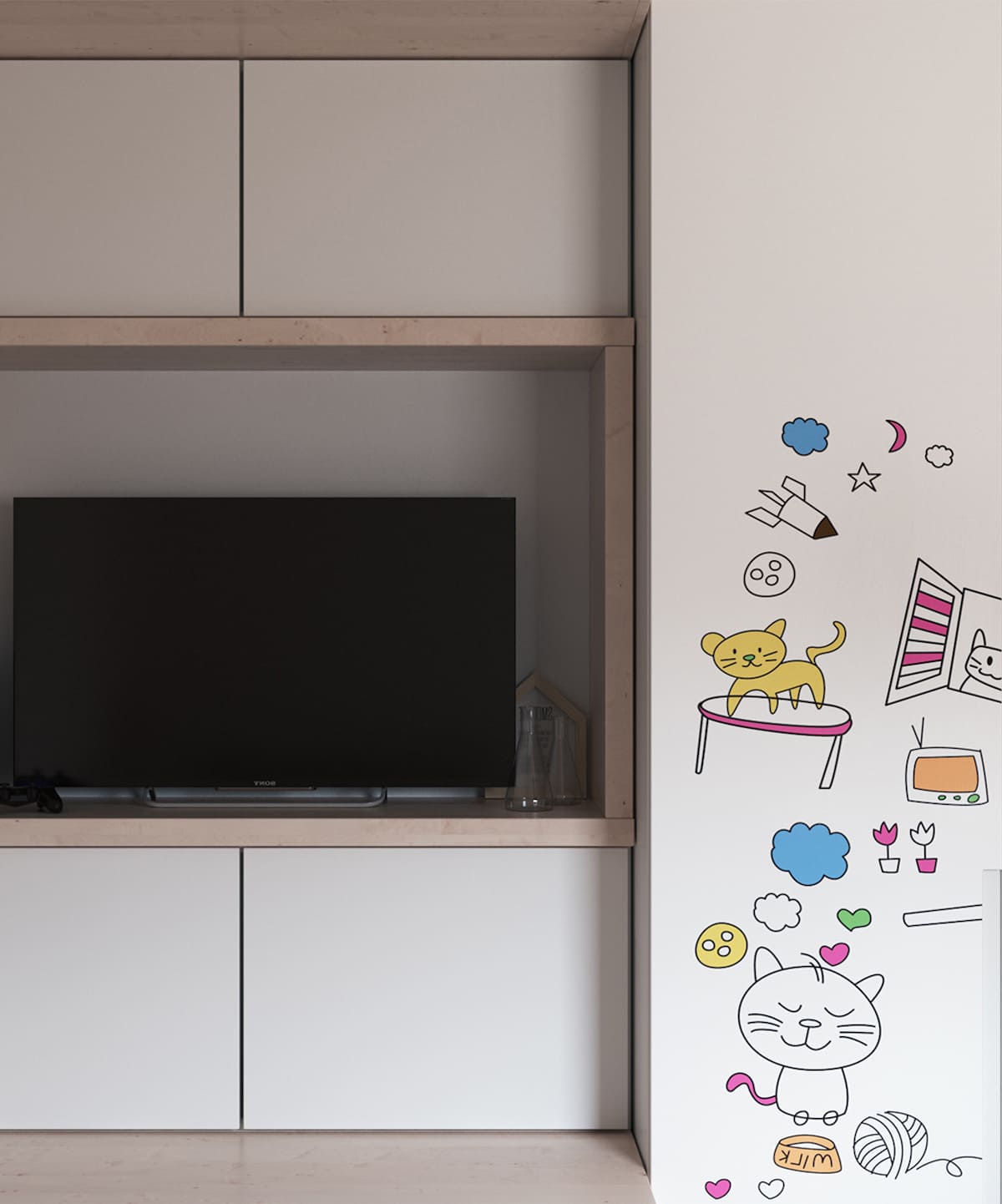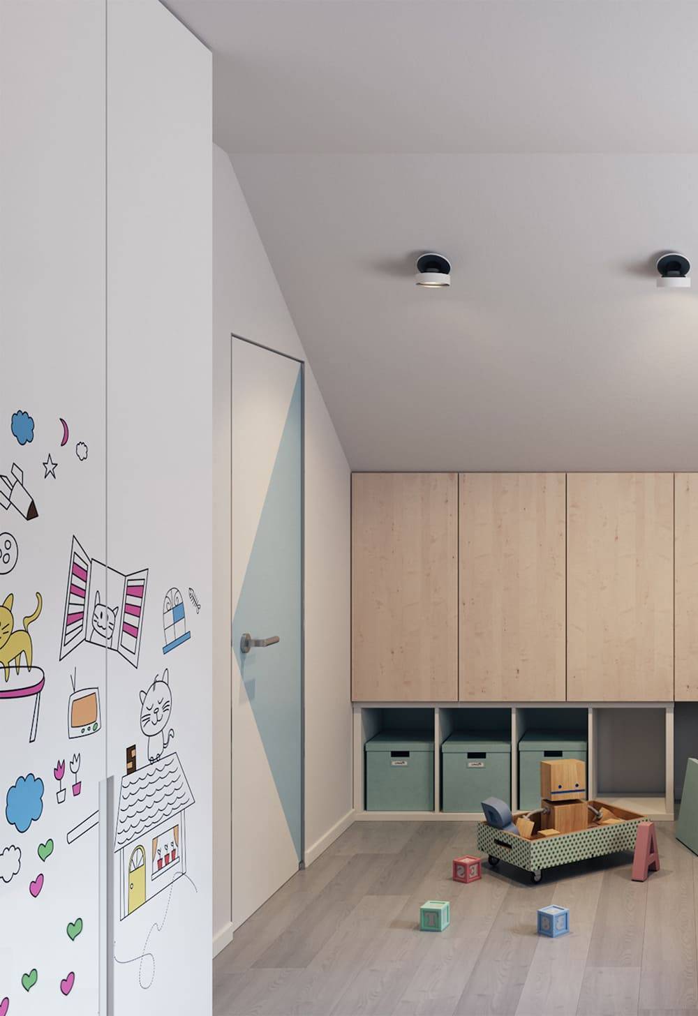 Желательно поощрять детскую фантазию и самовыражение – предусматривать на стене место для рисования или граффити.