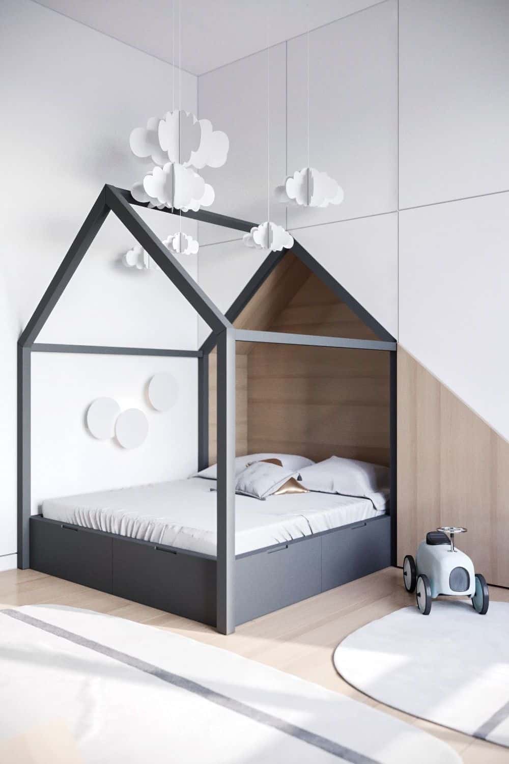 Этот вариант является модным уже давно и больше подойдет для мальчиков постарше, которым нравятся более строгие и стильные решения. Он подойдет и для детской, если следовать нескольким простым рекомендациям:
