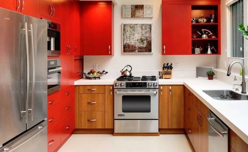 - если же ни один из приведенных вариантов не подходит, стоит рассмотреть, как обустраивают в хрущевках угловые кухни с холодильником. Обычно их располагают рядом с гарнитуром, устанавливая их как бы в нишу.