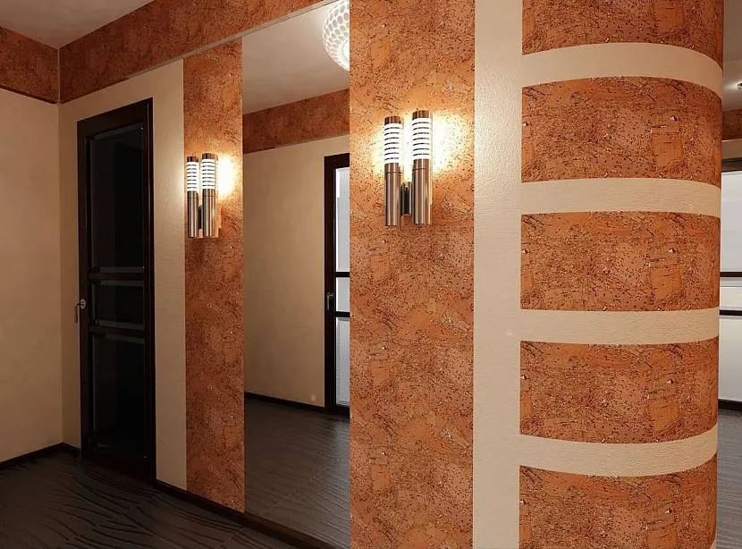 Комбинация жидких обоев и пробки в коридореИсточник krot.info