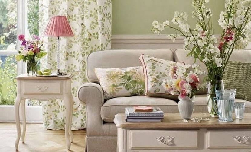 Несмотря на то, что в стилистике преобладают светлые полутона, комнаты, как правило, не смотрятся даже блекло. Стоит отметить, что акцент непременно стоит делать на красивых цветочных мотивах. С их помощью можно придать комнате особый шарм, а также колорит.